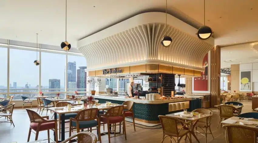 Yes. The venue offers Lotus Garden (26th floor). Outdoor spaces work well for welcome receptions, team-building activities, and evening networking events.